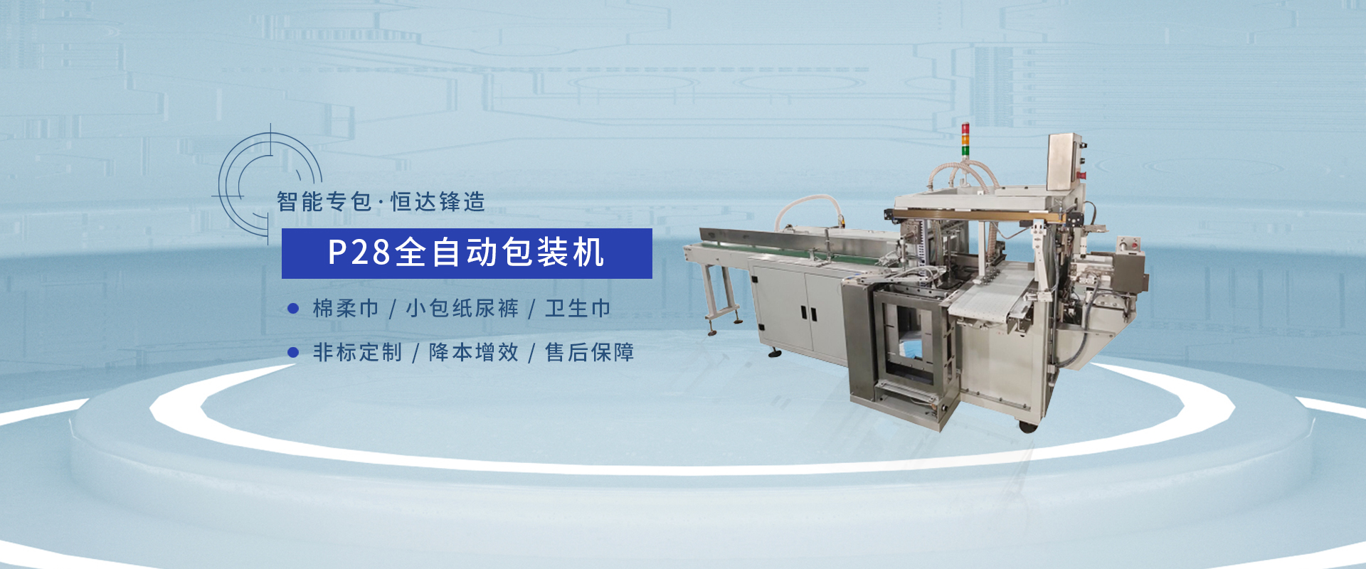 廈門恒達鋒機械有限公司成立于2008年,是一家集產品研發(fā)、生產、銷售、服務于一體的現(xiàn)代型企業(yè)。恒達鋒系列產品已覆蓋護理墊、衛(wèi)生巾、紙尿褲、拉拉褲、寵物墊等后道全自動包裝及半自動包裝等整體解決方案,產品并逐漸延伸至醫(yī)療、化妝品、食品等包裝裝備領域。